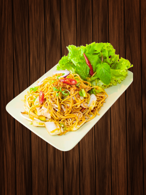 Gebratene Eiernudeln mit Hühnerfleisch, Rindfleisch und Gemüse