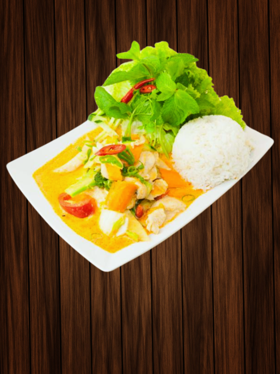 Nach Wahl: Thai-Rot-Curry | Gelb-Curry | Grüner Curry | Teriyaki Sauce